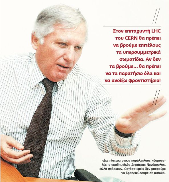 Ο κορυφαίος φυσικός και ακαδημαϊκός Δημήτρης Νανόπουλος ρίχνει φως στις προσδοκίες μας από το πείραμα του CΕRΝ και στην πρόοδο για την επίτευξη του Ενιαίου Μοντέλου της Φυσικής