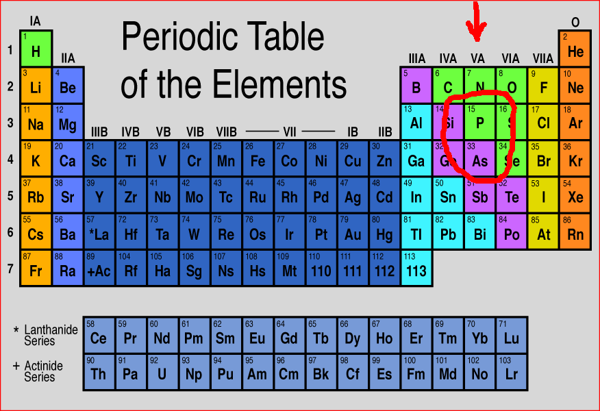 Δεν είναι τυχαίο το γεγονός ότι το αρσενικό είναι στην ίδια ομάδα (15η) με τον φωσφόρο και για τον λόγο αυτό έχουν παρόμοιες χημικές ιδιότητες.