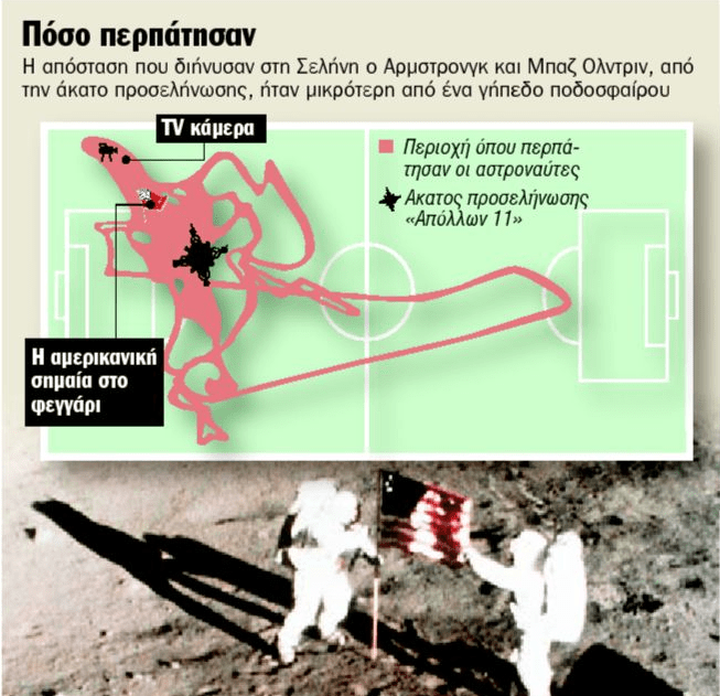 Το ανέλπιστο«comeback»του Νιλ Αρµστρονγκ στη δηµοσιότητα προκάλεσε ένας µπλόγκερ που ασχολείται µε επιστηµονικά θέµατα, ο Ρόµπερτ Κρούλγουιτς. Σε ένα άρθρο του αναρωτήθηκε για ποιον λόγο ο Αρµστρονγκ και ο συνάδελφός του Μπαζ Ολντριν περπάτησαν ελάχιστα στη Σελήνη, διασχίζοντας µια απόσταση µικρότερη ακόµη κι από ένα ποδοσφαιρικό γήπεδο….