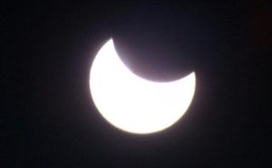 | Η φωτό είναι τραβηγμένη την ώρα της έκλειψης από το Αγρίνιο, περίπου στις 10:10, από τον ερασιτέχνη αστρονόμο Δημήτρη Καπετανάκη. |