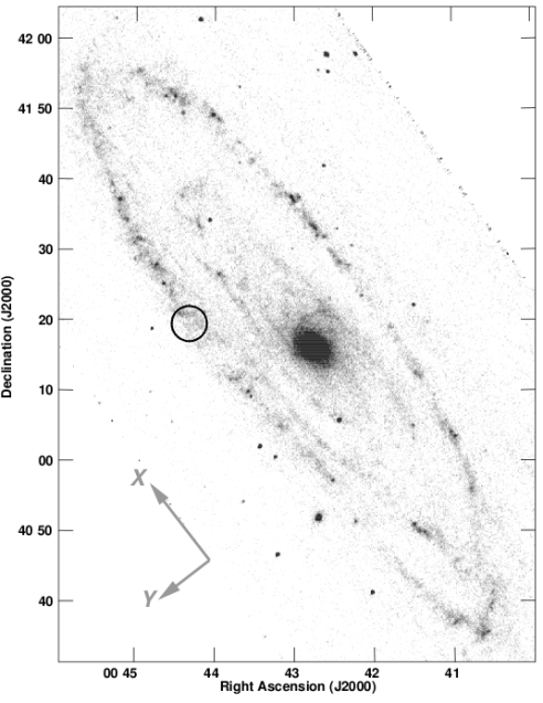 | Σε κύκλο η περιοχή της Ανδρομέδας απ’ όπου εκπέμπει το μέϊζερ μεθανόλης |