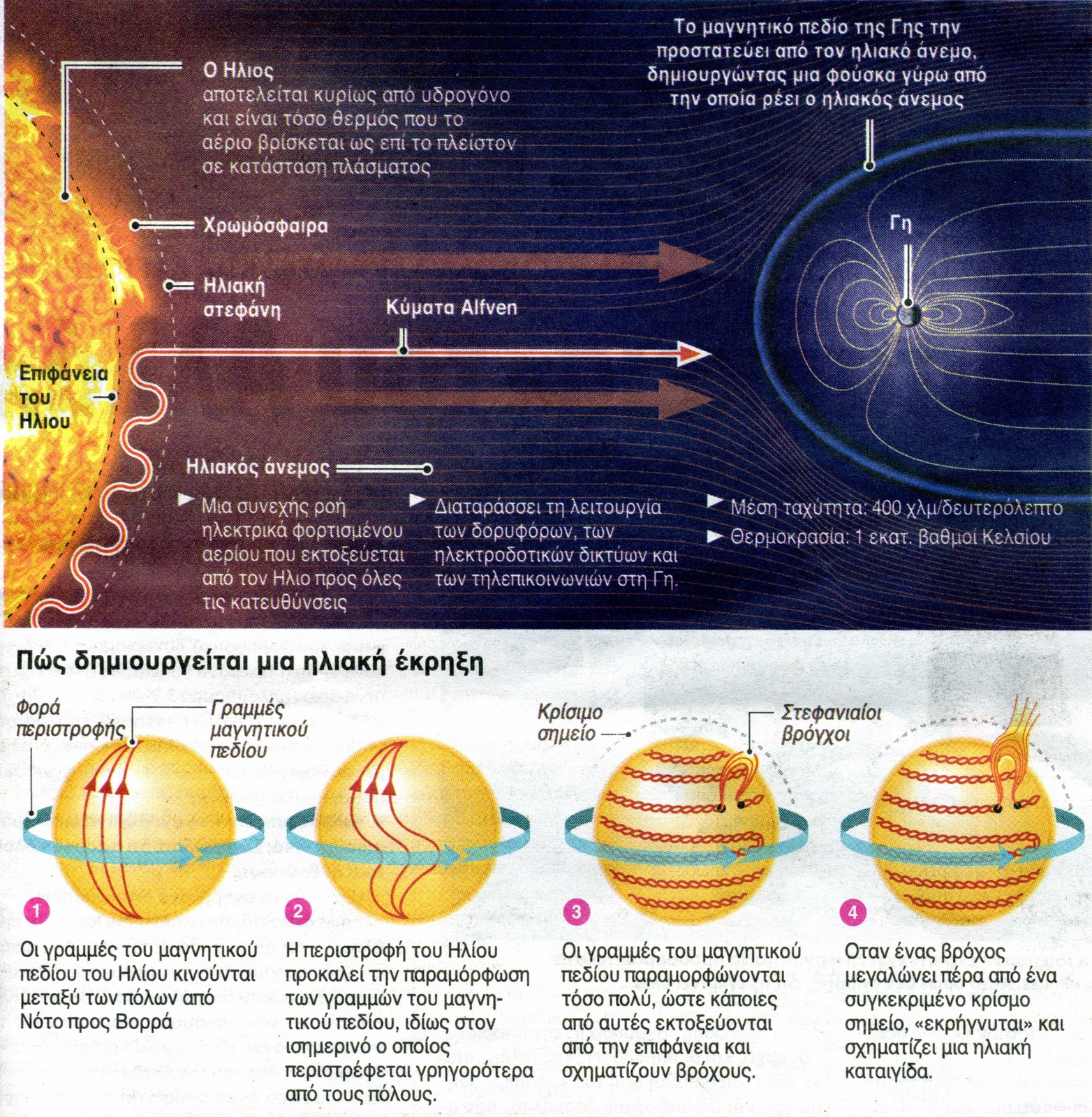 Οι ηλιακές εκρήξεις προκαλούνται από την αιφνίδια εκτόξευση μαγνητικής ενέργειας από την επιφάνεια του Ηλιου. Αυτού του είδους τα ηλιακά φαινόμενα μπορούν να προκαλέσουν διατάραξη της λειτουργίας των δορυφόρων αλλά και των ηλεκτρικών δικτύων και των τηλεπικοινωνιών στη Γη. Οπως εξηγεί σε ανακοίνωσή της η NASA, «ευάλωτες είναι οι ραδιοεπικοινωνίες στα βραχέα κύματα καθώς και οι ερασιτεχνικές ραδιοεκπομπές, ενώ είναι πιθανόν να επηρεαστούν και τα συστήματα πλοήγησης όπως το GPS»….Προς το παρόν πάντως δεν έχουν αναφερθεί ιδιαίτερα προβλήματα στη Γη, πέρα από μια σύντομη διατάραξη στις ραδιοεπικοινωνίες στα βραχέα στη νότια Κίνα, ενώ παρόμοια προβλήματα ήσσονος σημασίας αναφέρθηκαν και από ορισμένες αεροπορικές εταιρείες. Αμερικανοί επιστήμονες εκτιμούν ότι το πιο πιθανό αποτέλεσμα των συγκεκριμένων ηλιακών εκρήξεων θα είναι τελικώς ένα πιο έντονο Βόρειο Σέλας το οποίο θα είναι ορατό σε περισσότερες περιοχές και πολύ πιο νότια απ’ ό,τι συνήθως. Στο παρελθόν ανάλογες μαγνητικές καταιγίδες έχουν προκαλέσει σοβαρές διακοπές ηλεκτροδότησης, όπως συνέβη τον Μάρτιο του 1989, όταν εκατομμύρια νοικοκυριά στο Κεμπέκ του Καναδά βυθίστηκαν στο σκοτάδι.
