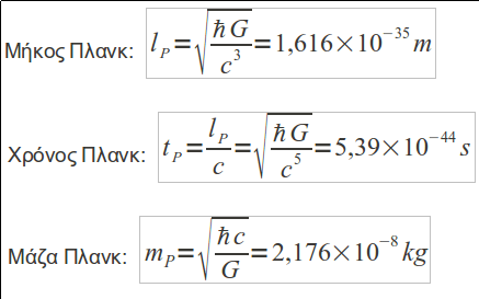 Μήκος Planck, χρόνος Planck και μάζα Planck