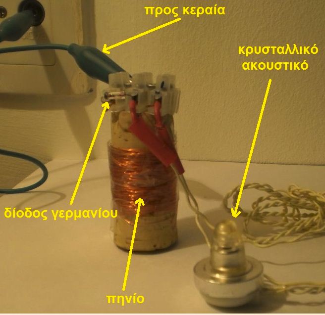 3. Έφτιαξα και γώ ένα τέτοιο ραδιόφωνο ακολουθωντας το διάγραμμα του άρθρου σας χωρίς πυκνωτή και επιανα το δεύτερο πρόγραμμα. Δεν είχα κρυσταλλικό ακουστικό και το σύνδεσα με ηχεία. Δυστυχώς όμως σταμάτησε να λειτουργεί όταν έκλεισαν την EΡΤ.