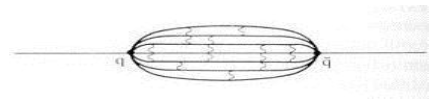 Γραμμές χρωμοηλεκτρικού πεδίου μεταξύ ενός κουάρκ και ενός αντικουάρκ. Το πεδίο είναι συμπιεσμένο σε μια δέσμη που δεν διαχέεται σε όλο το χώρο και συμπεριφέρεται σαν ένα ελατήριο που ασκεί ελκτική δύναμη στα σωμάτια