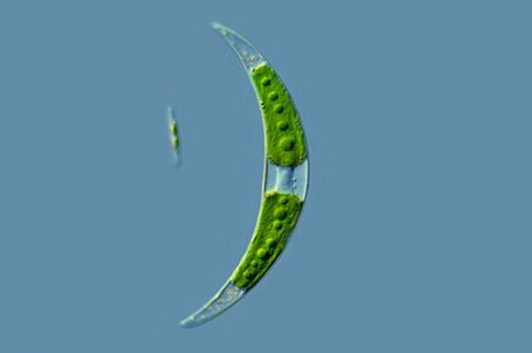 Το Closterium moniliferum, με χαρακτηριστικό σχήμα μισοφέγγαρου, είναι ένα μικρόβιο του φυτοπλαγκτού σε λίμνες σε ποτάμια όλου του κόσμου.