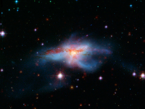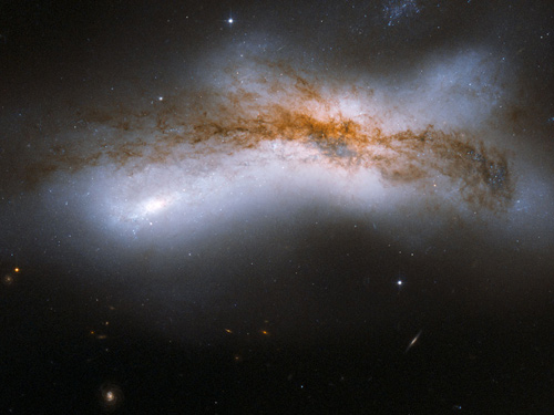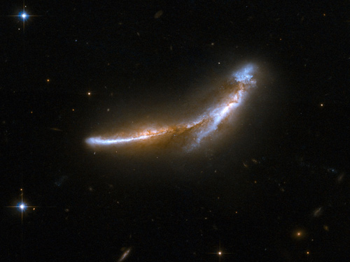 Ο γαλαξίας NGC 520 είναι το προϊόν σύγκρουσης δύο γαλαξιών. Έχοντας ξεκινήσει εδώ και300 εκατομμύρια χρόνια πριν, η σύγκρουση θα συνεχιστεί για πολύ χρόνο ακόμα.