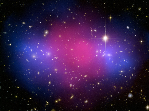 Ο MACSJ 0025 διαμορφώθηκε όταν δύο τεράστια σμήνη γαλαξιών συγκρούστηκαν. Το ένα σμήνος πέρασε μέσα από το άλλο κατά τη διάρκεια της σύγκρουσης και τώρα είναι πάλι ξεχωριστά, αποκαλύπτοντας τον τρόπο με τον οποίο αλληλεπιδρούν η συνήθης ύλη και η σκοτεινή ύλη.