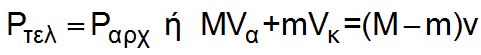 Σύμφωνα με την αρχή διατήρησης της ορμής