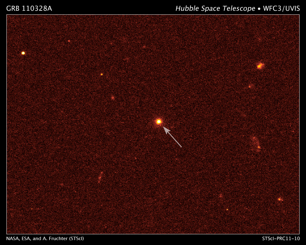 Ο δορυφόρος προσδιόρισε μια θέση για την έκρηξη, που τώρα αναφέρεται ως (gamma-ray burst) GRB 110328A. Αμέσως δεκάδες τηλεσκόπια σε όλο τον κόσμο στράφηκαν στη θέση που προσδιόρισε το Swift και παρατήρησαν πολύ κοντά στο σημείο της έκρηξης έναν μικρό και απομακρυσμένο γαλαξία.