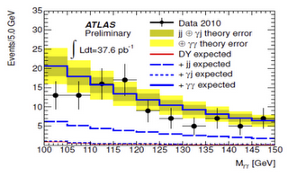 ….σύμφωνα με ένα εσωτερικό έγγραφο της ομάδας ATLAS – που μάλλον δεν έπρεπε να βγει στη δημοσιότητα – αναφέρεται ένας συντονισμός στην ενέργεια 115 GeV. Είναι αυτό που θα περίμενε κανείς να δει, αν υπήρχε το σωματίδιο Higgs … και αν η θεωρία της υπερσυμμετρίας – η οποία διορθώνει κάποια προβλήματα του καθιερωμένου προτύπου – είναι σωστή.