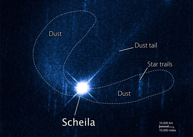 …. του αστεροειδούς Scheila με τον άγνωστο αστεροειδή διαμέτρου 30 μέτρων, με ταχύτητα περίπου 18000 χιλιομέτρων την ώρα.