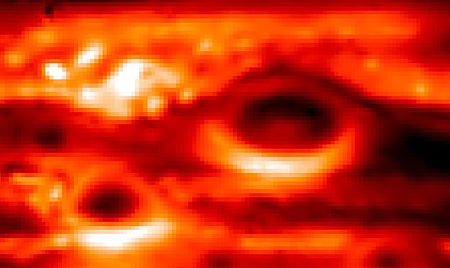| Η υπέρυθρη εικόνα της κηλίδας που έδωσε πέρυσι η NASA. Όσο πιο σκοτεινό είναι το χρώμα, τόσο πιο ψυχρή είναι η περιοχή. |