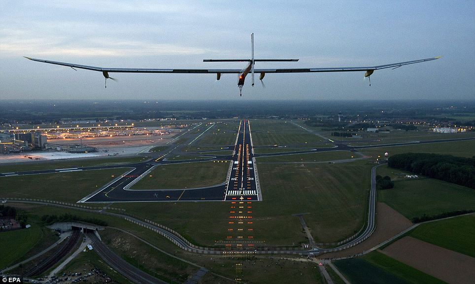 Μετά από μία πτήση 13 ωρών, αφότου απογειώθηκε από την Eλβετία, το ηλιακό αεροσκάφος, Solar Impulse προσγειώθηκε, στις Βρυξέλλες