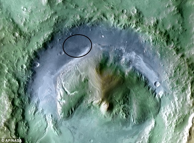 | Ένα πιθανό σημείο εξερεύνησης είναι ο κρατήρας Gale |