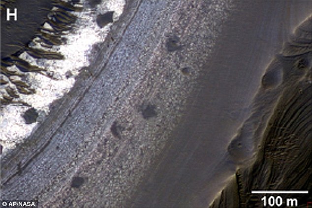 | Λεπτομέρεια του κρατήρα Gale. Το Curiosity θα έχει τη δυνατότητα να προσγειωθεί στο σημείο που θα επιλεχθεί με την μεγαλύτερη ακρίβεια από κάθε άλλη αποστολή. |