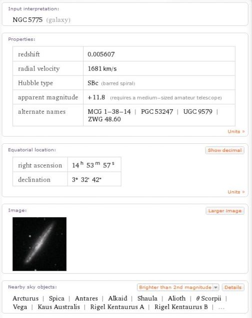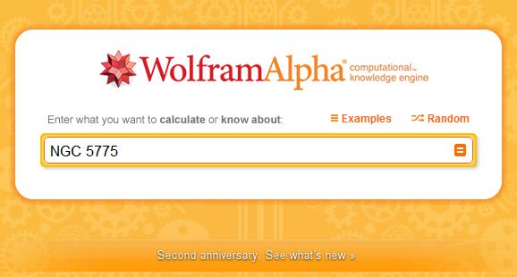 Θα χρησιμοποιήσουμε το Wolfram Alpha για να μάθουμε σχετικά με τον γαλαξία NGC 5775 ….