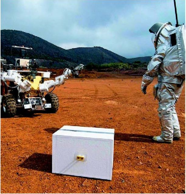 είχε στείλει εκεί για δοκιµές το «Ευρωµπότ» – είναι όχηµα στο µέγεθος ανθρώπου, µε δύο βραχίονες και κατευθυντήριες κάµερες – το οποίο σχεδιάστηκε για να επιτελεί «πολύ δύσκολες και πολύ επικίνδυνες αποστολές», όπως ανέφερε στην εφηµερίδα «Independent», o Φίλιπ Σκούνεγιανς, επικεφαλής του Γραφείου Ροµποτικών Προγραµµάτων του Οργανισµού. Στο ίδιο.. πλατό, η υπηρεσία Austrian Space Forum, δοκίµαζε το τελευταίο της επίτευγµα που είναι µια διαστηµική στολή βάρους 45 κιλών (λέγεται Aouda X), η οποία έχει ενσωµατωµένους υπολογιστές, αισθητήρες και συστήµατα αερισµού.