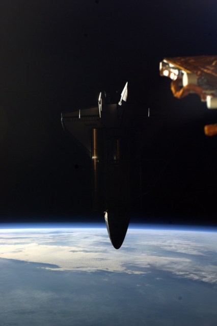 | Ο Διεθνής Διαστημικός Σταθμός όπως φαίνεται από το Atlantis που απομακρύνεται |