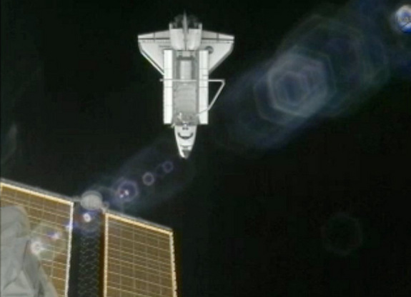 | Το διαστημικό λεωφορείο Atlantis από εξωτερική κάμερα του ΔΔΣ |