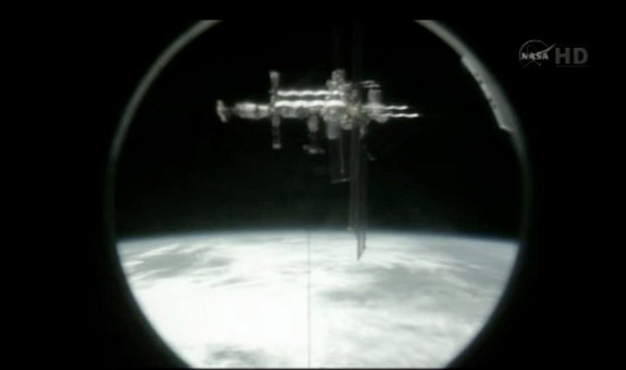 | Το διαστημικό λεωφορείο Atlantis από εξωτερική κάμερα του ΔΔΣ |