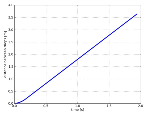 Από την τελευταία εξίσωση βλέπουμε ότι απόσταση μεταξύ των δυο σταγόνων αυξάνει γραμμικά με το χρόνο και ότι κάθε δευτερόλεπτο η απόσταση τους αυξάνεται κατά 1,96 μέτρα.