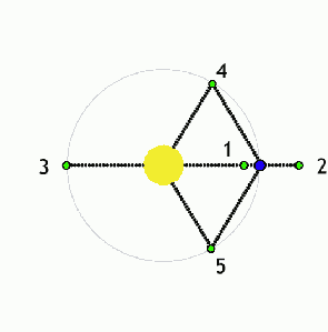 Στο σχήμα που ακολουθεί βλέπουμε τα σημεία Lagrange του συστήματος Γης και Ήλιου. Στα σημεία L4 και L5 η ισορροπία είναι ευσταθής, ενώ στα άλλα τρία ασταθής.