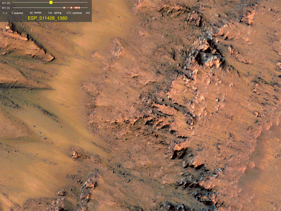 Μια σειρά εικόνων που ελήφθησαν από το διαστημικό όχημα Mars Reconnaissance Orbiter της NASA, αποκαλύπτει «δάχτυλα» νερού στον πλανήτη την άνοιξη και το καλοκαίρι.