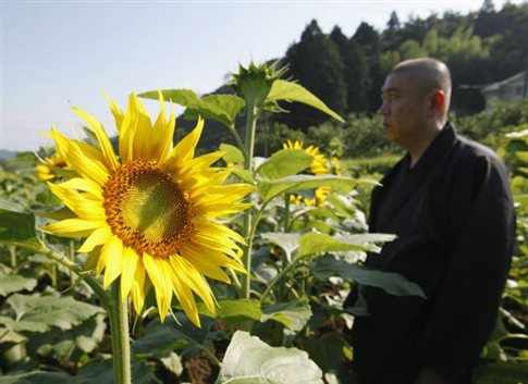 Κοντά στο μοναστήρι του Ζονζί, δοσίμετρα και μετρητές Γκάιζερ παρακολουθούν τα επίπεδα της ραδιενέργειας, τα οποία σε ορισμένα σημεία υπερβαίνουν τα 5 microsievert ανά ώρα, πολύ πάνω από το επίσημο όριο ασφάλειας. Τα ηλιοτρόπια ίσως δεν λύσουν το πρόβλημα, τουλάχιστον όμως τα χρώματά τους δίνουν στους κατοίκους μια νότα αισιοδοξίας, υπό το φάσμα μιας αόρατης απειλής που θα τους καταδυναστεύει για χρόνια.