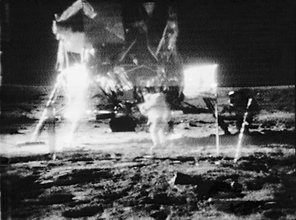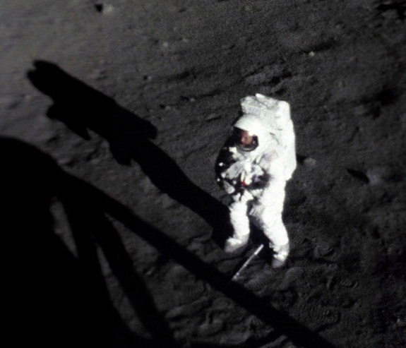 Το σεληνιακό έδαφος και οι κάτασπρες στολές των αστροναυτών φωτίζονται έντονα από τον Ήλιο , γι’ αυτό και η φωτογραφική κάμερα που θα τα αποτυπώσει θα πρέπει να ρυθμιστεί κατάλληλα . Όπως συμβαίνει με την ίριδα του ματιού μας , η όποια συστέλλεται σε ένα έντονο φωτεινό περιβάλλον, έτσι και το διάφραγμα της φωτογραφικής μηχανής θα πρέπει να ρυθμιστεί κατά τέτοιον τρόπο , ώστε η έκθεση του φιλμ στο φως ναι είναι σύντομη.