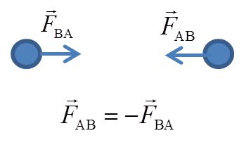 Ας έλθουμε τώρα στον τρίτο νόμο του Νεύτωνα: Αν δυο σώματα Α και Β αλληλεπιδρούν, η δύναμη που ασκείται από το Β στο Α είναι αντίθετη προς τη δύναμη που ασκείται από το Α στο Β