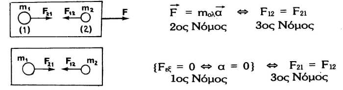 Μια πιο προσεκτική όμως αντιπαράθεση του δεύτερου και του πρώτου νόμου του Νεύτων μας δημιουργεί την εντύπωση ότι ο πρώτος προκύπτει από τον δεύτερο