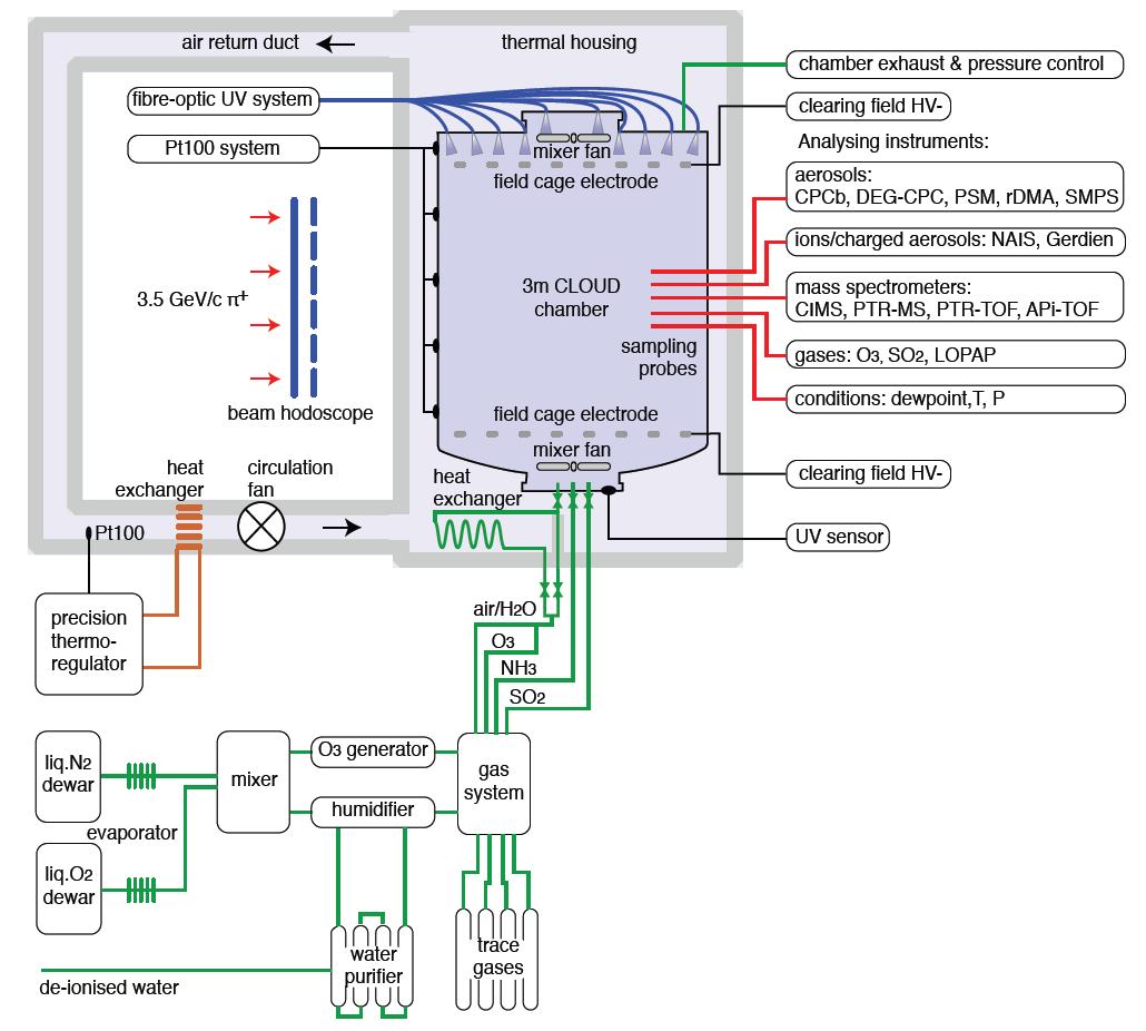 Ερευνητές του πειράματος CLOUD (Cosmics Leaving Outdoor Droplets) γεμίζουν ένα θάλαμο με φιλτραρισμένο αέρα και χημικά συστατικά (υδρατμούς, διοξείδιο του θείου, όζον, αμμωνία κ.α.) τα οποία οι ειδικοί πιστεύουν ότι αποτελούν τις πρώτες ύλες δημιουργίας των σύννεφων……