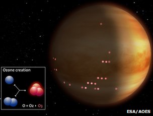 Το όζον είναι ένα μόριο που αποτελείται από τρία άτομα οξυγόνου. Μερικοί αστροβιολόγοι υπέθεταν ότι η παρουσία οξυγόνου, άνθρακα και όζοντος στην ατμόσφαιρα ενός πλανήτη δείχνει ότι υπάρχει ζωή στην επιφάνειά του. Τα νέα αποτελέσματα από τον πλανήτη Αφροδίτη μάλλον αναιρούν αυτή την υπόθεση.