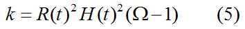 όπου G η σταθερά της παγκόσμιας έλξης και ρ(t) η ενεργειακή πυκνότητα του σύμπαντος. Ο γεωμετρικός παράγοντας k παίρνει τις τιμές k=0, +1 και -1, που καθορίζουν την γεωμετρία και την εξέλιξη του σύμπαντος.