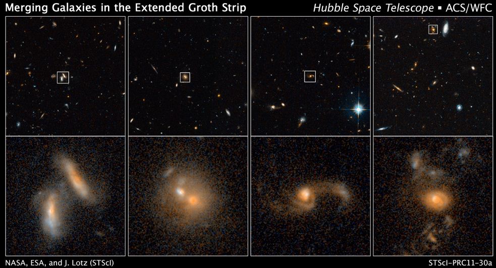 Η ομάδα της Τζένιφερ Λοτζ στο Επιστημονικό Ινστιτούτο Διαστημικού Τηλεσκοπίου, με έδρα στη Βαλτιμόρη, δημιούργησε προσομοιώσεις των γαλαξιακών συγκρούσεων, οι οποίες αντιστοιχήθηκαν στη συνέχεια με γαλαξιακές επιδράσεις που κατέγραψε το Hubble.