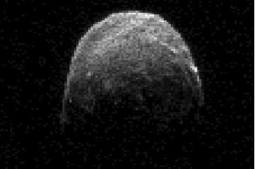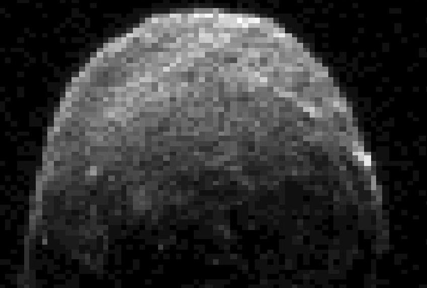 Εικόνα από ραντάρ του αστεροειδή 2005 YU55 που ελήφθη στις 7 Νοεμβρίου, 2011, από το Deep Space Network antenna στο Goldstone της Καλιφόρνια, όταν ο αστεροειδής απείχε 3,6 σεληνιακές αποστάσεις, περίπου 1.380.000 χιλιόμετρα, από τη Γη.