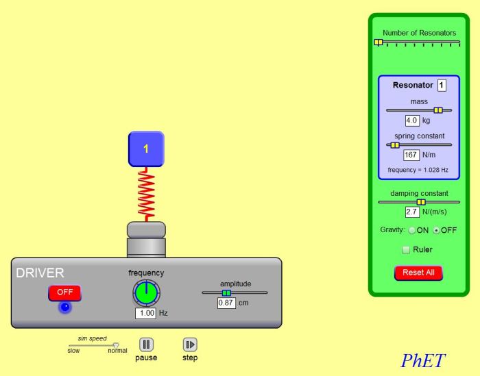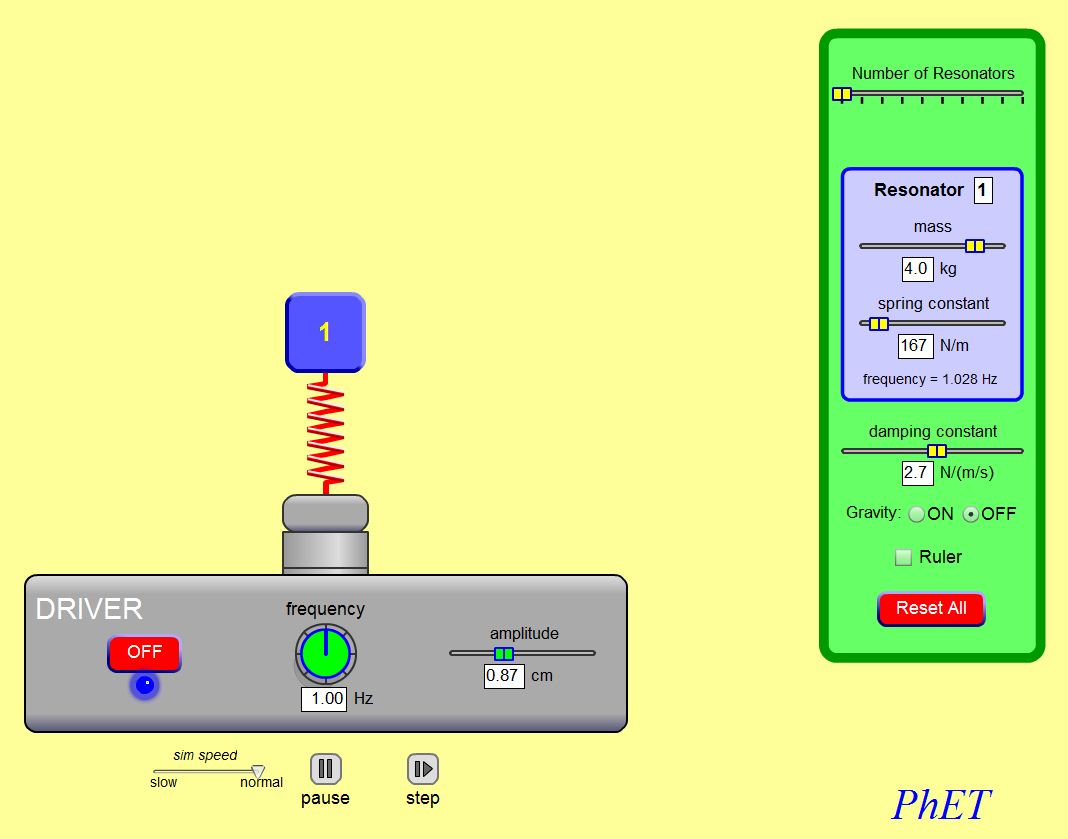 Για την «πειραματική μελέτη» της εξαναγκασμένης ταλάντωσης κάντε κλικ στο παρακάτω εικονίδιο. Παρατηρήστε τα μεταβατικά φαινόμενα, την εξέλιξη της ταλάντωσης για διάφορες τιμές των παραμέτρων, το φαινόμενο του συντονισμού κ.λ.π.
