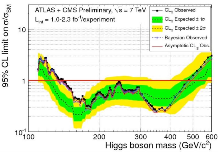 Ένα γεγονός που επισκιάστηκε από τα υπερφωτεινά νετρίνα του πειράματος OPERA, ήταν η ανακοίνωση σχετικά με τον αποκλεισμό νέου εύρους μαζών, μέσα στο οποίο αναμενόταν η ανίχνευση του σωματιδίου Higgs. Σύμφωνα με την παρουσίαση που έγινε στο Παρίσι από τον Gigi Rolandi (ΕΔΩ), το σωματίδιο Ηiggs – όπως προβλέπεται από το καθιερωμένο πρότυπο – αποκλείεται με μια βεβαιότητα 95% για όλες τις μάζες μεταξύ 141 GeV και 476 GeV. (Περισσότερες τεχνικές λεπτομέρειες ΕΔΩ)