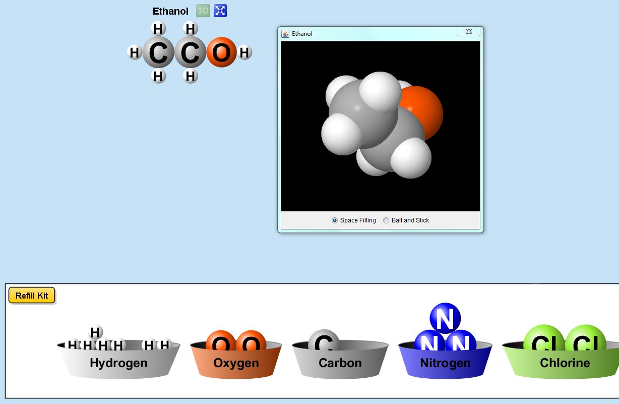 Ξεκινώντας από τα άτομα, κατασκευάζετε όποια μόρια θέλετε – που μπορείτε να τα δείτε και σε τρεις διαστάσεις….