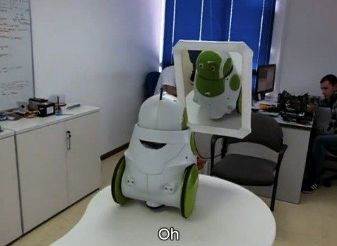 Το ρομπότ QBO «cue-bee-oh» έμαθε να αναγνωρίζει τον εαυτό του στον καθρέφτη!