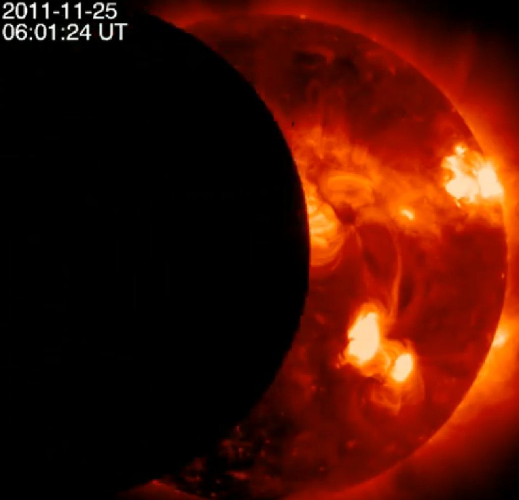 Δεδομένου ότι ο δορυφόρος περιστρέφεται γύρω από τη Γη με μεγάλη ταχύτητα σε ύψος περίπου 700 χιλιομέτρων είδε την έκλειψη όχι μία φορά αλλά τρεις!