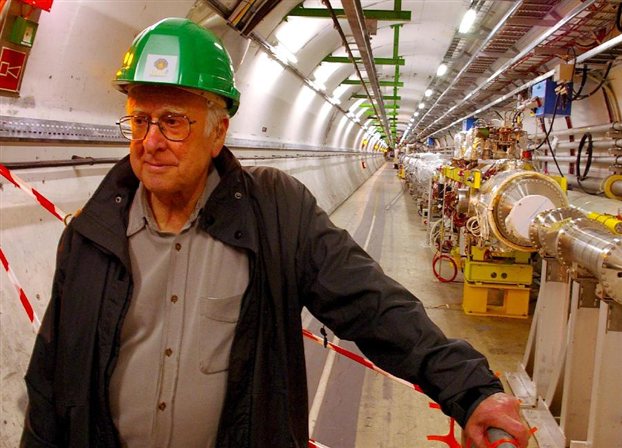Ο καθηγητής Πίτερ Χιγκς στον Μεγάλο Επιταχυντή Ανδρονίων κατά τη διάρκεια της επίσκεψής του στον CERN
