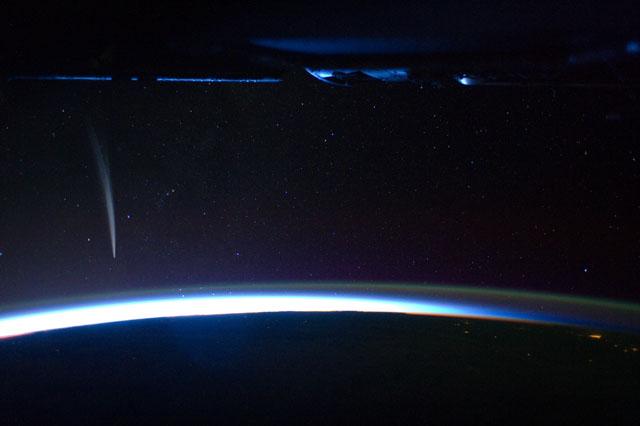 Στις εντυπωσιακές φωτογραφίες που ακολουθούν βλέπουμε τον κομήτη Lovejoy κοντά στον ορίζοντα της Γης καθώς απομακρύνεται, ασφαλής πλέον από την κόλαση του Ήλιου. Τις φωτογραφίες πήρε ο αστροναύτης της NASA Dan Burbank , από τον Διεθνή Διαστημικό Σταθμό στις 21 Δεκεμβρίου 2011, δηλώνοντας ότι «είναι το πιο εκπληκτικό πράγμα που έχω δει ποτέ στο διάστημα!»