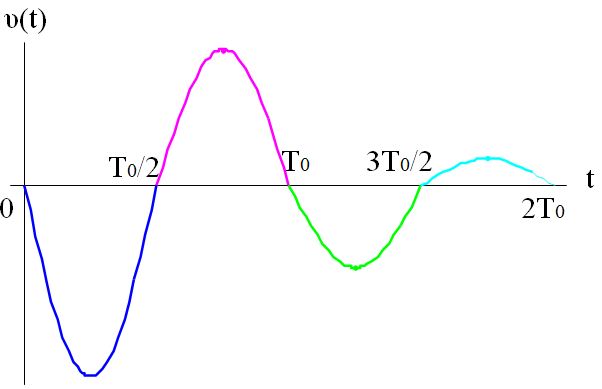 Και στην αρμονική ταλάντωση, με τις παραπάνω αρχικές συνθήκες, η ταχύτητα μηδενίζεται για πρώτη φορά εφόσον ολοκληρωθεί η «μισή» ταλάντωση, την χρονική στιγμή t=T0/2.