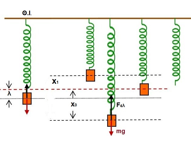 ή αν θεωρήσουμε τον συμβολισμό των ταλαντώσεων η απομάκρυνση της μάζας από τη θέση ισορροπίας θα είναι x1=-0,75m.