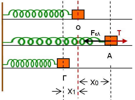 (Επιπλέον, με παρόμοιο τρόπο μπορούμε να αποδείξουμε ότι καθώς η μάζα θα κινείται τώρα προς τα δεξιά θα σταματήσει ξανά στιγμιαία όταν η απομάκρυνσή της θα είναι x2=0,5m … ο επόμενος μηδενισμός της ταχύτητας γίνεται στη θέση x3=-0,25m …. και το σώμα σταματάει οριστικά στη θέση x4=0)