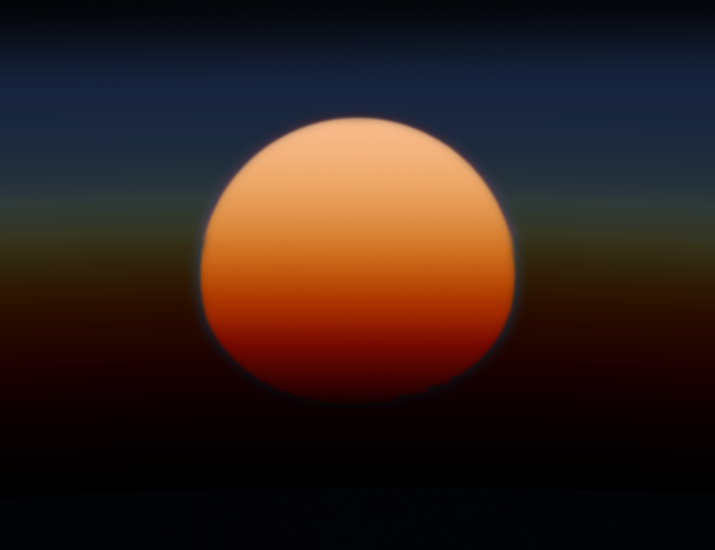 Η ομοιότητα με το γήινο ηλιοβασίλεμα οφείλεται, στο ότι λήφθηκε υπόψη ότι η ατμόσφαιρα του εξωπλανήτη περιέχει πυριτική σκόνη που προκαλεί τη σκέδαση Rayleigh (όπως συμβαίνει με τη σκόνη και στη Γη). Ο «ήλιος» φαίνεται μεγαλύτερος γιατί ο εξωπλανήτης βρίσκεται πιο κοντά σε σχέση με την απόσταση Γης – Ήλιου.