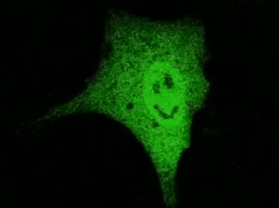 Ο κύκλος είναι ο πυρήνας του κυττάρου καθώς η πρωτεΐνη εισέρχεται προς τα μέσα και τα σκοτεινά μπαλώματα που μοιάζουν με μάτια και στόμα χαμογελαστού προσώπου είναι τμήματα του πυρήνα στα οποία η πρωτεΐνη δεν μπορεί να εισέλθει.