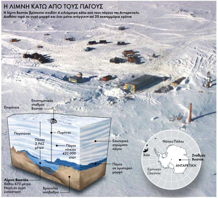 Σε αυτή τη λίμνη επιχειρούσαν να φθάσουν επί δύο δεκαετίες ρώσοι επιστήμονες επειδή πρόκειται για ένα οικοσύστημα εντελώς άγνωστο στον άνθρωπο. Το στοίχημα ήταν και παραμένει αν υπάρχει εκεί ζωή και τι είδους μπορεί αυτή να είναι.